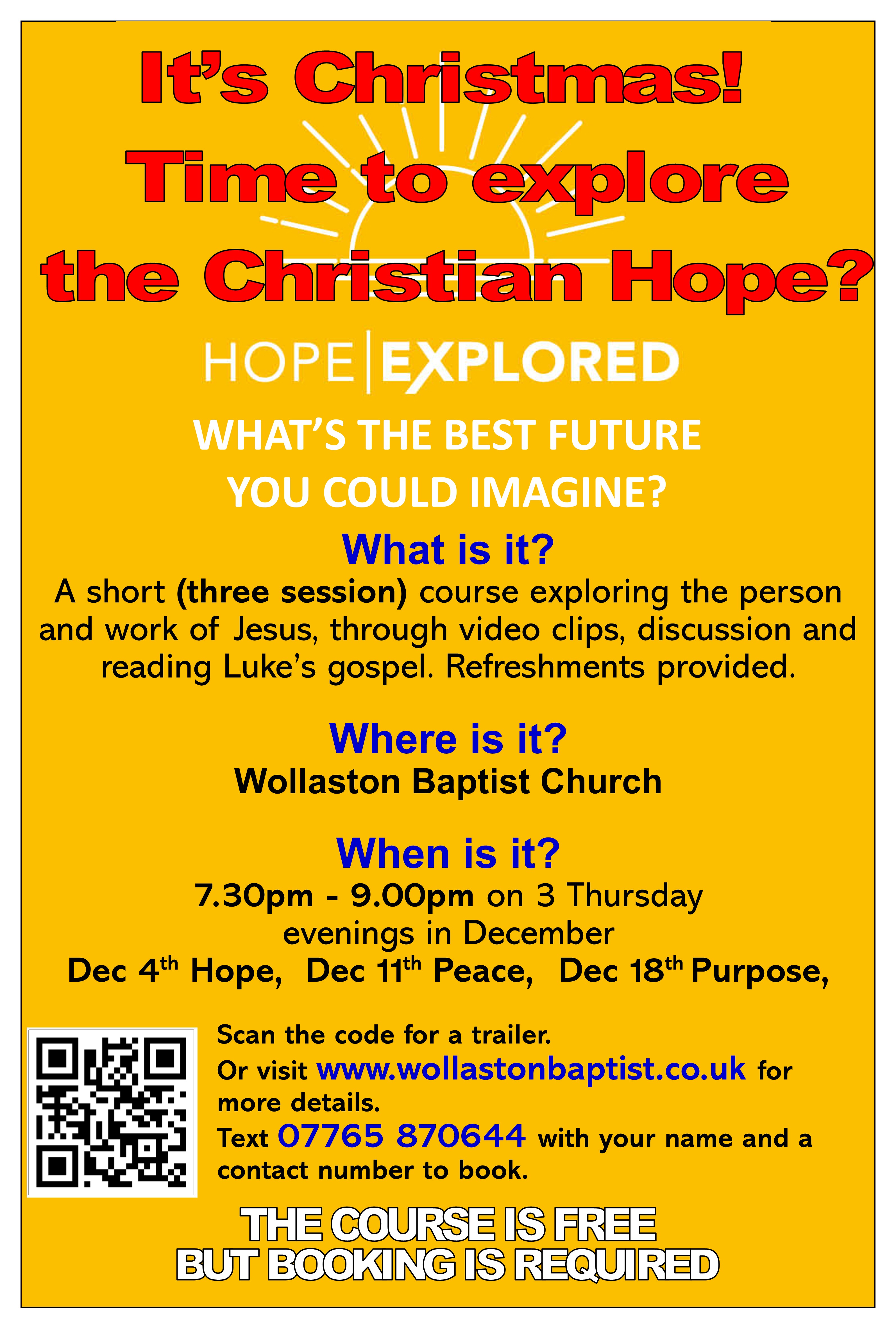 ♦ Hope Explored December 2025 at Wollaston Baptist Church: